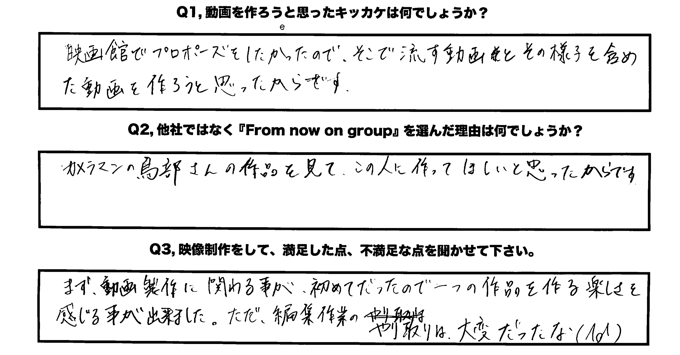 - 映像制作をして、満足点と不満足点をお聞かせください