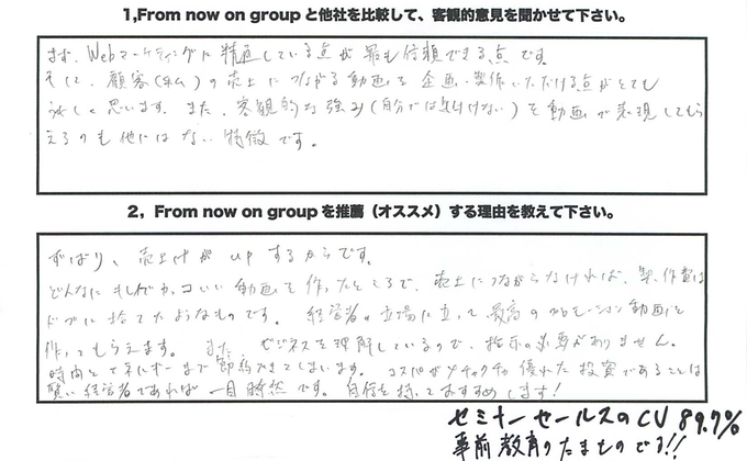 - From Now On Groupと他社を比較して、客観的意見をお聞かせください。